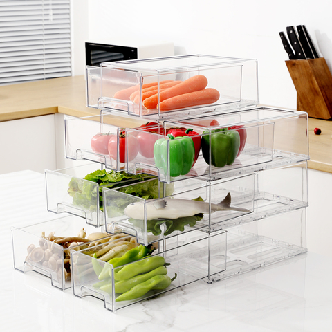 プラスチックPETキッチンスタッカブルコンテナ収納ボックスビン冷蔵庫引き出し冷蔵庫オーガナイザー食品収納コンテナ