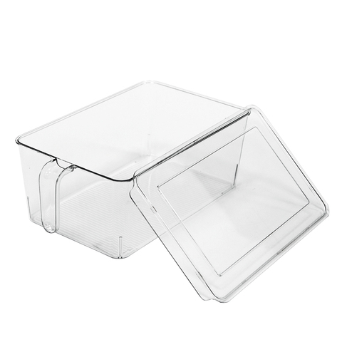 工場キッチン収納ボックススタッカブルパントリービンプラスチック冷蔵庫オーガナイザー蓋とハンドル付き