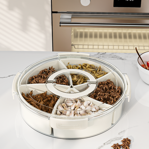 Nhựa chia phục vụ khay di động Snack platters nhà bếp thực phẩm container xoay gia vị ngăn lưu trữ hộp nắp xử lý